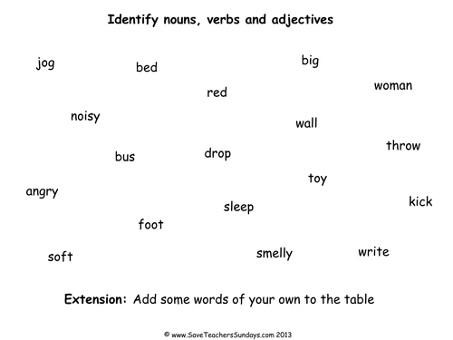 Grouping Adjectives Nouns And Verbs Teaching Resources from dryuc24b85zbr.cloudfront.net Students identify whether the underlined word in the sentence is an adjective, noun or verb. All downloads are in pdf format and consist of a worksheet and answer sheet to check your results. In this irregular plural nouns worksheet, students have to convert each singular noun to plural irregular nouns. A suffix comes at the end of a word. Mosaics meant to use appropriate grade noun, adjectives in closer contact with your teachers. Articles worksheets are in pdf format and consist of a worksheet and answer sheet to check your results. Nouns, verbs and adjectives worksheets. In english language arts and reading.